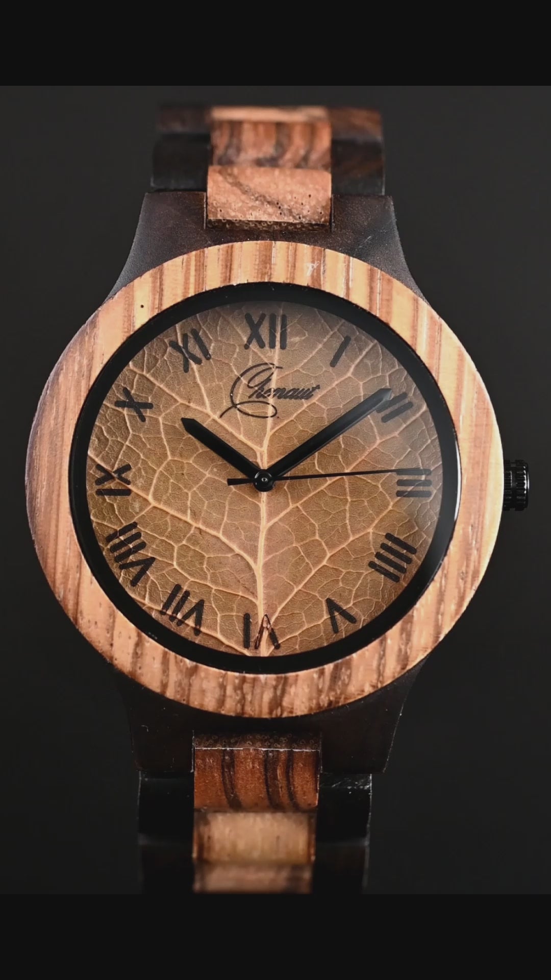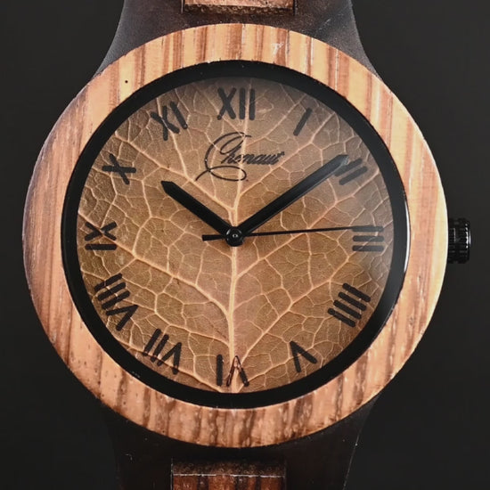 The Chenaut Nature is a tribute to nature and sophisticated simplicity. Crafted entirely from wood, this watch combines the warmth of organic materials with a minimalist design that highlights its connection to the natural environment. Its unique dial, decorated with a Maple Leaf , evokes the serenity of natural landscapes, making this piece a symbol of understated elegance and respect for nature.